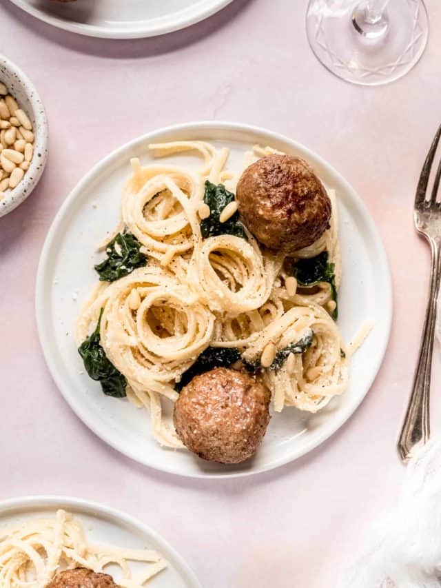 Easy Lemon Ricotta Pasta with Spinach and Meatballs