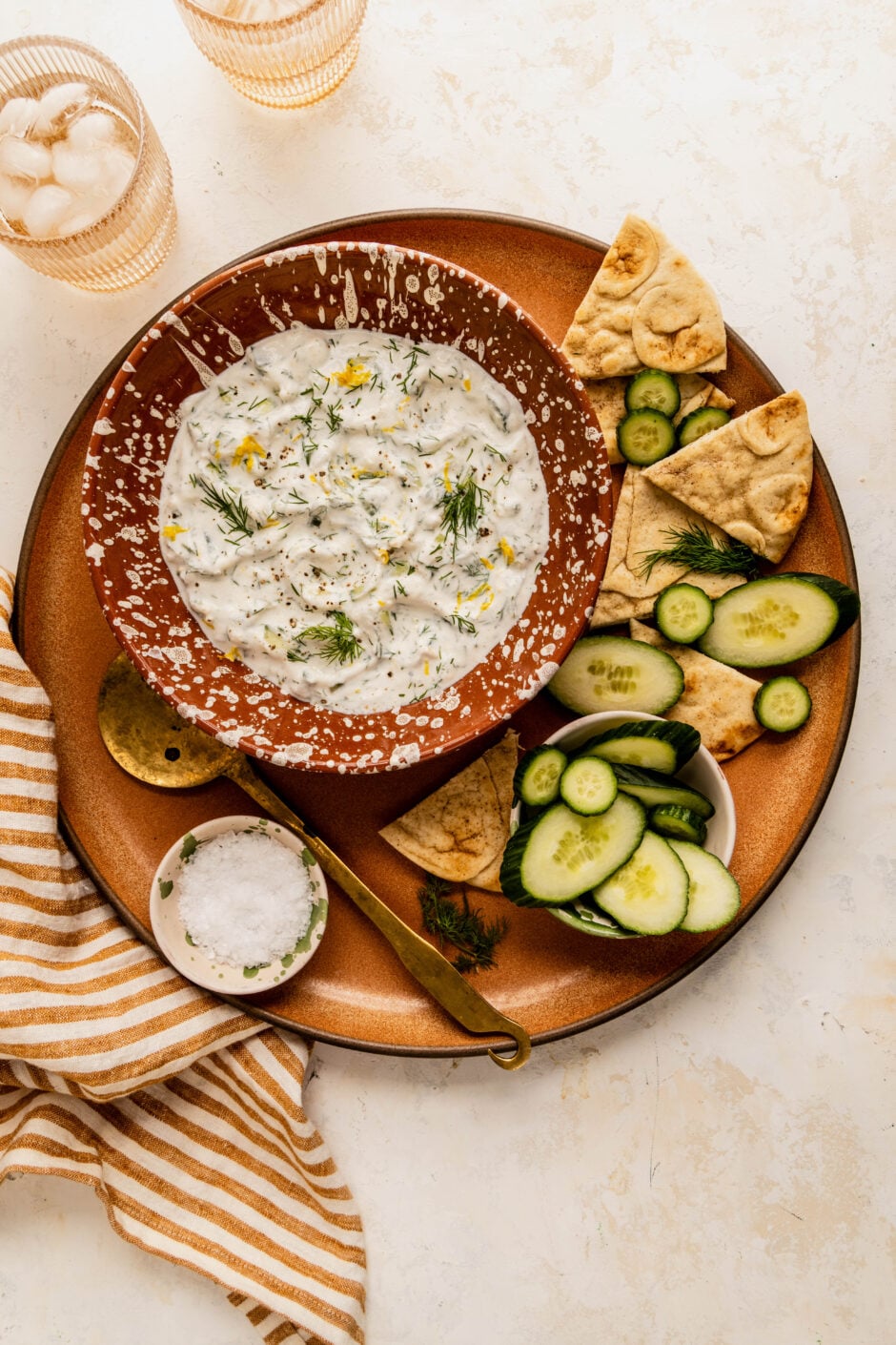 Let the tzatziki chill for 20–30 minutes for the best flavor